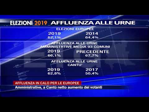 Affluenza in calo sul Lario per le elezioni europee. In media, nei 148 comuni della provincia di Como, ha votato il 62,1% degli aventi diritto rispetto al 64,4% della precedente tornata elettorale per il parlamento europeo. Nel capoluogo, i votanti sono scesi dal 56,2% di cinque anni fa al 53,9%. Il paese con il maggior numero di votanti è Cusino, dove l’85,8% degli aventi diritto ha espresso la propria preferenza.