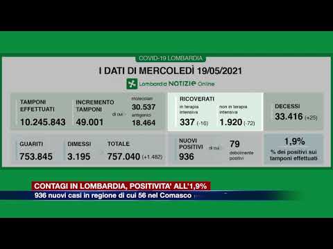 In leggera risalita ma ancora sotto il 2%. Il tasso di positività (che misura i nuovi contagi sul numero di tamponi processati) oggi si attesta in Lombardia a 1,9% (ieri era 1,8). Continuano a diminuire i ricoverati nelle terapie intensive e nei reparti. A fronte di 49.001 tamponi effettuati, sono oggi 936 i nuovi positivi al Covid in regione di cui 56 nel Comasco. I guariti/dimessi sono 1.482 e portano il totale, dall’inizio dell’emergenza, a 757.040.